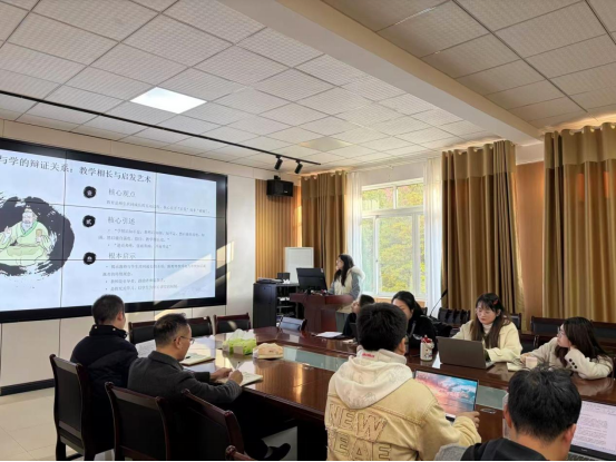 活动开始前,15名教育管理专业的同学自发分为5组,围绕“教育是什么”“如何实现有效教育”等核心问题,深入研读文本、梳理观点、碰撞思考。核心分享环节,5组代表依次上台,结合PPT展示,用10分钟时间呈现小组对两部经典的解读。有的组从《学记》中的“教学相长”与当代师生关系的角度展开分享。有的组以“教育是灵魂的唤醒”为核心观点,剖析现代教育的精神追求;核心分享后,同组同学补充未展开的细节或新视角,有的同学结合自身工作经历,分享对“教育实践性”的理解;也有同学向导师请教“如何平衡教育的理想与现实”,让各组观点更完整,也为后续讨论提供了更多切入点,现场氛围热烈。