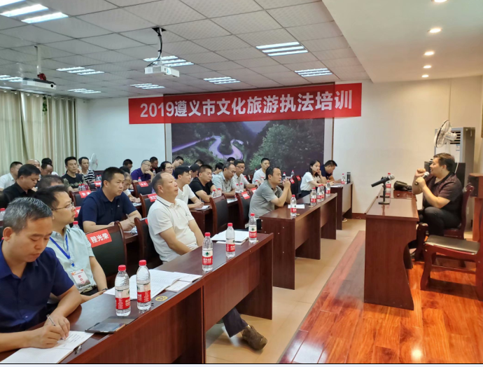 为加强遵义市文化旅游执法意识,提高文化旅游执法水平,切实保障文化旅游经营者和消费者的合法权益,遵义市文旅局于2019年8月15日至8月16日举办文化旅游执法培训班,贵州教育发展研究中心主任唐志明教授应邀作“《中华人民共和国旅游法》解读”的专题讲座。唐教授围绕《旅游法》出台的背景、过程、亮点和条文进行说明和解读,并与学员就文化旅游执法中存在的问题及其处理方法进行深入交流。