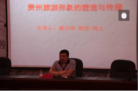 5月22日,中心主任唐志明教授在学校“道德讲堂”作题为“贵州旅游形象的塑造与传播”的学术报告。历史与社会学院、地理与旅游学院100多位学生参加了报告会。